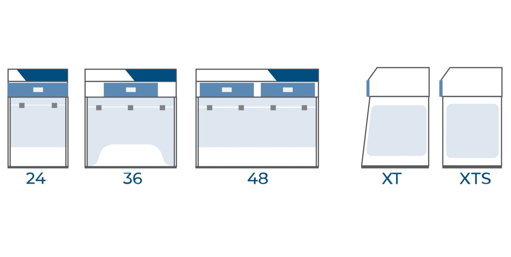 Air Science Purair® Basic Ductless Fume Hoods are available in 3 standard widths, and 2 depth options (standard and reduced) totaling 6 standard models.