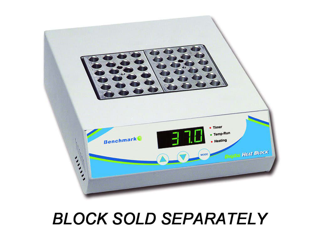 Benchmark Scientific Traditional Dry Baths provide accurate “set and walk away” digital temperature selection, eliminating the need for external thermometers and repetitive “fine tuning” of a temperature control knob. Simply enter the desired temperature on the digital touchpad and the Benchmark Dry Bath provides accurate temperature with real time monitoring that continuously maintains the selected temperature within ±0.2°C. In addition, a digital timer is built into the touchpad display. Although it is not designed to shut off the heater, it can be used to alert the user that a chosen time interval has timed out.