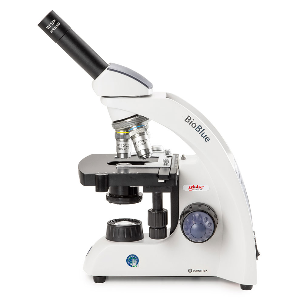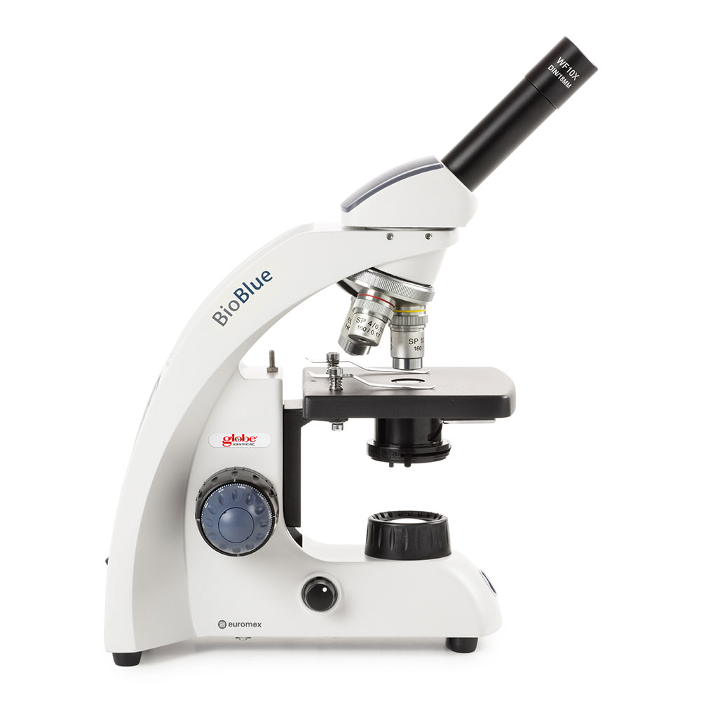 Clear and bright images at every magnification. The modern Euromex BioBlue Compound Microscopes are developed for educational purposes with a primary focus on ergonomics and today’s quality standards. These microscopes are supplied with secure eyepieces and adjustable rack stop to prevent damage to sample and objectives.