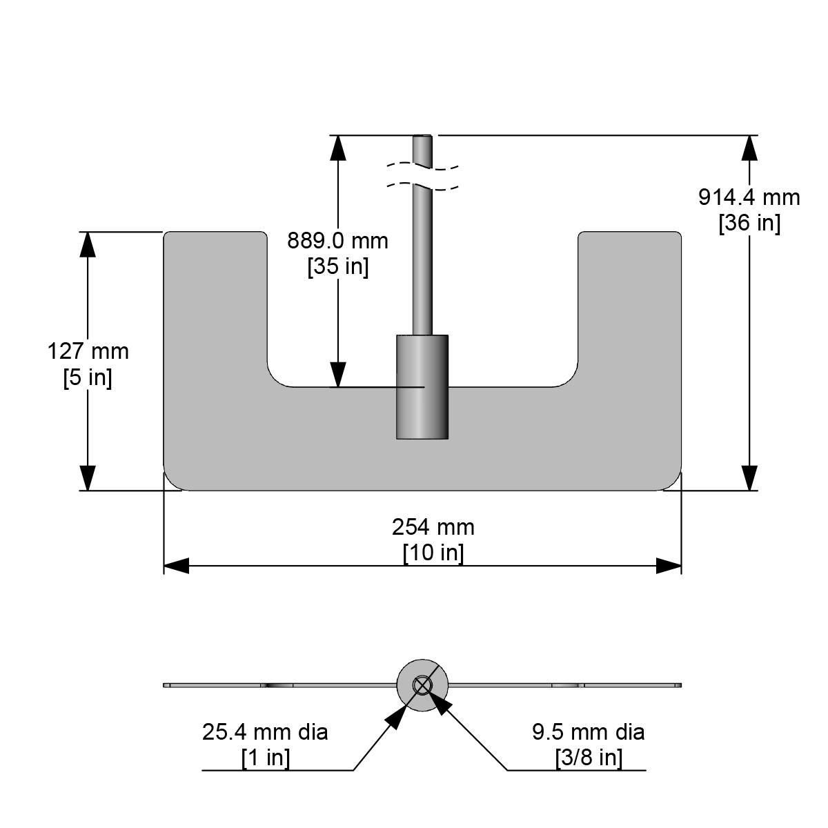Rod: 914 mm x Ø9.5 mm; Impeller: Ø127 x 254 mm