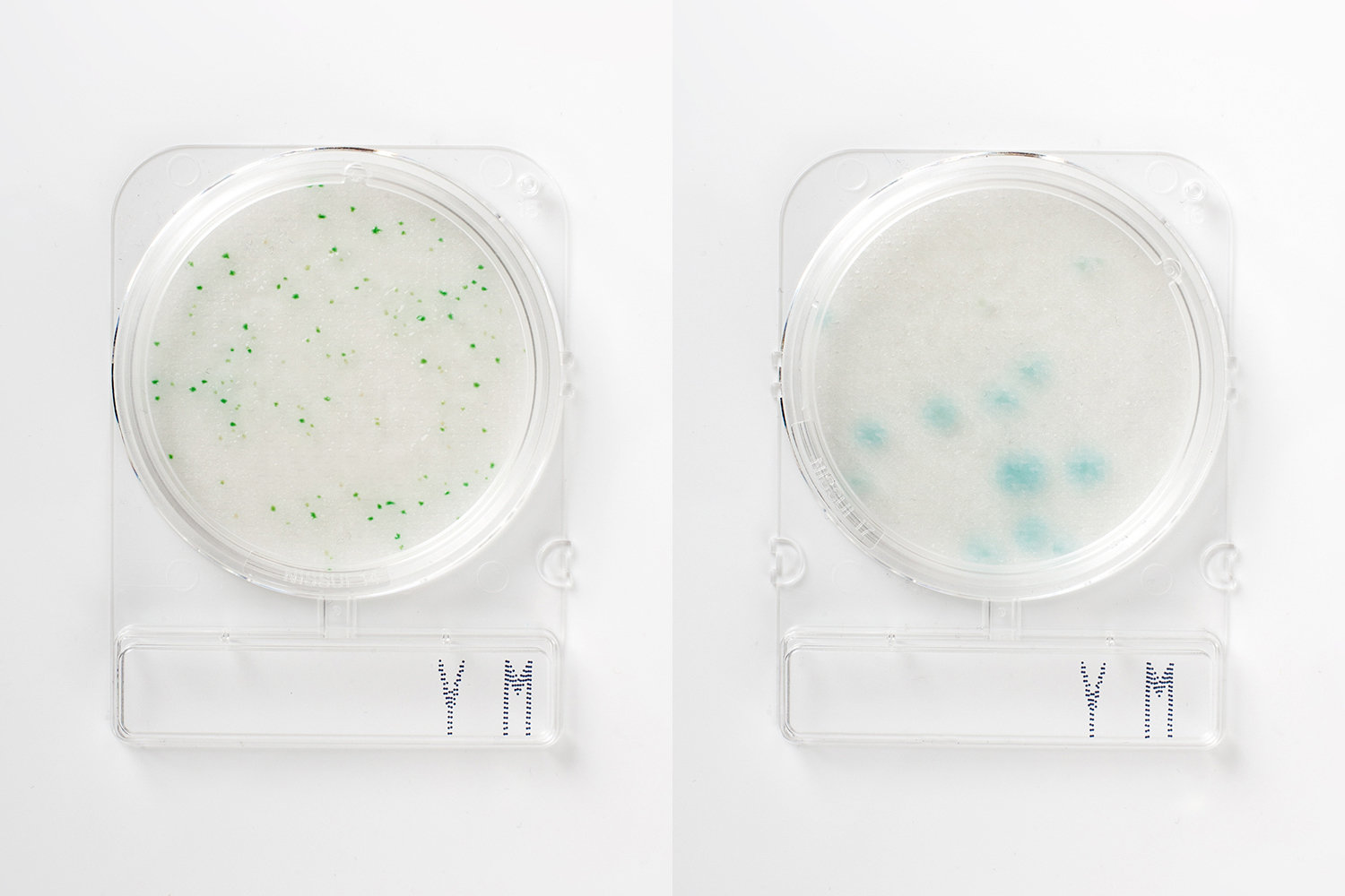 Yeast and mold display different colony morphology and color due to the chromogenic substrate present in the media. X-Phos is degraded by growing yeast presenting a blue coloration of the colony, yeast will appear as blue or cream colonies. Bacterial growth is inhibited by antibiotics. The head space in the Compact Dry™ plate allows mold to develop their characteristic filamentous shape due to growing mycelium.