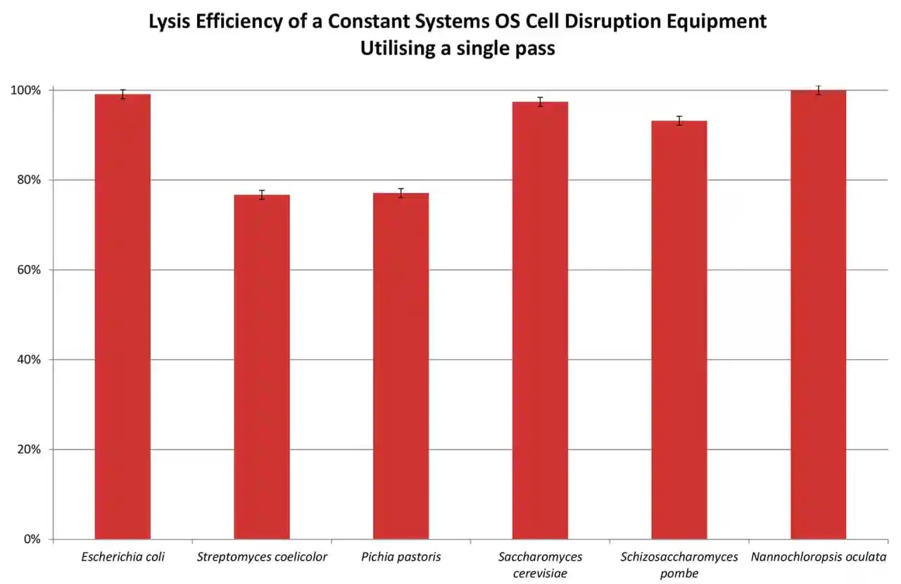 The OS is recommended for total volumes of up to 24ml which is ideal for those users who wish to upgrade from small bench-top techniques such as bead beating and sonication. The OS takes advantage of Constant Systems precise and consistent hydraulic control which is fully scalable through the whole product range from 0.5ml single preparation processing to large volume processing at 150L per hour. This precise control ensures that the entire sample is processed at the operators set pressure to ensure accurate and consistent results and in most cases a single process or pass is adequate therefore multiple passes are not required. The OS model can be utilised for processing fluid, re-suspended, viscous, tissue, plant and frozen sample types.