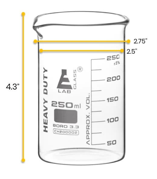 Industrial strength Eisco Glass Heavy Duty Low-Form Griffin Beakers are made of high quality, heavy duty, borosilicate 3.3 glass. 5mm thick, uniform walls provide excellent strength against breakage.
