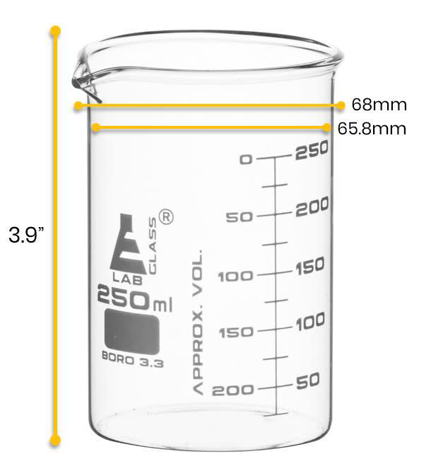 - 10 to 2000ml beakers feature dual scale graduations, as per ASTM-E960