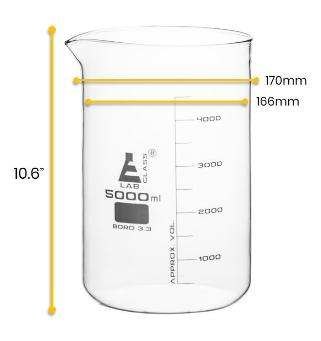 - 3000 to 10000ml beakers feature single scale graduations, as per DIN 12231