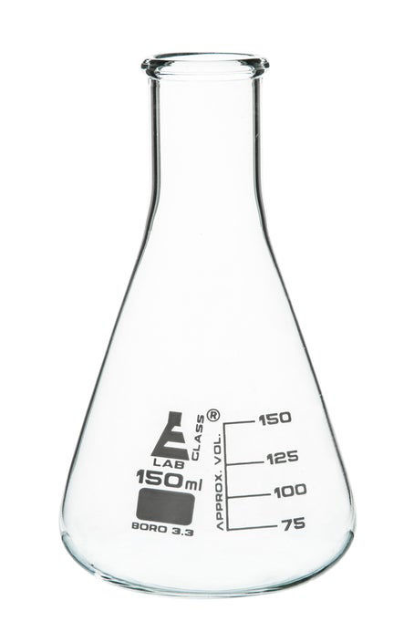 Eisco Narrow Mouth Erlenmeyer Flasks are made from high quality hand blown premium borosilicate 3.3 glass and are autoclavable with superior chemical durability. Low temperature gradient - can withstand high temperatures & thermal shocks.