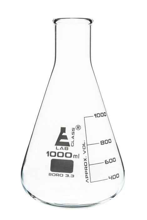 Eisco Narrow Mouth Erlenmeyer Flasks are made from high quality hand blown premium borosilicate 3.3 glass and are autoclavable with superior chemical durability. Low temperature gradient - can withstand high temperatures & thermal shocks.