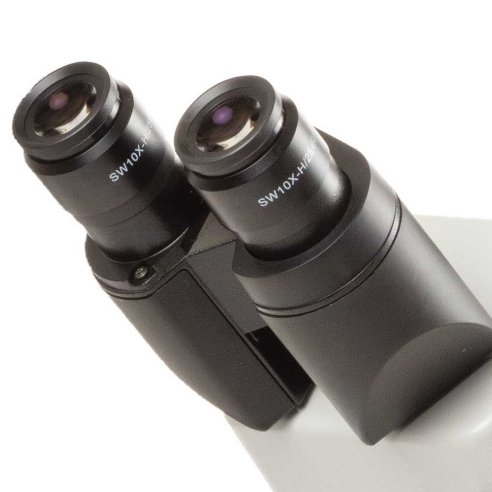 Trinocular 45º inclined. 47-78mm interpupillary. Diopter adjustment on both eye tubes