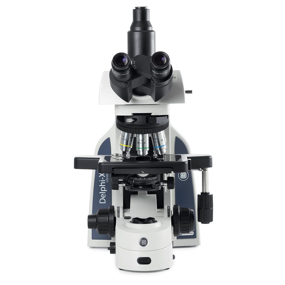 The Euromex Delphi-X Observer Compound Microscope is a state-of-the-art microscope for advanced life science applications. Outstanding optical performance with 25mm field of view and high numerical aperture of the Plan 60mm parfocal EIS objectives enable perfect observations, color rendering at high resolving power.