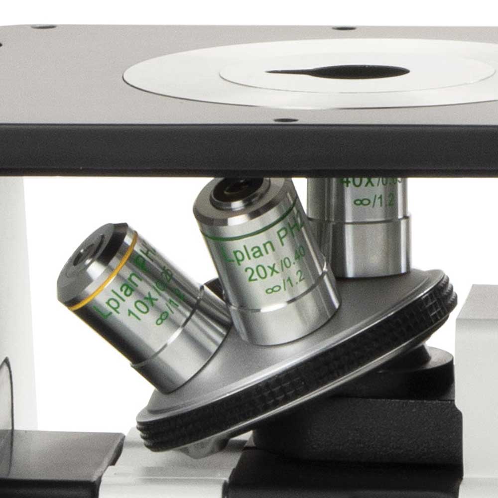 The inverted Oxion Inverso biological microscopes are available for phase contrast applications. Specific objectives compensate the 1.2mm thick bottoms of the petri dishes or culture dishes.