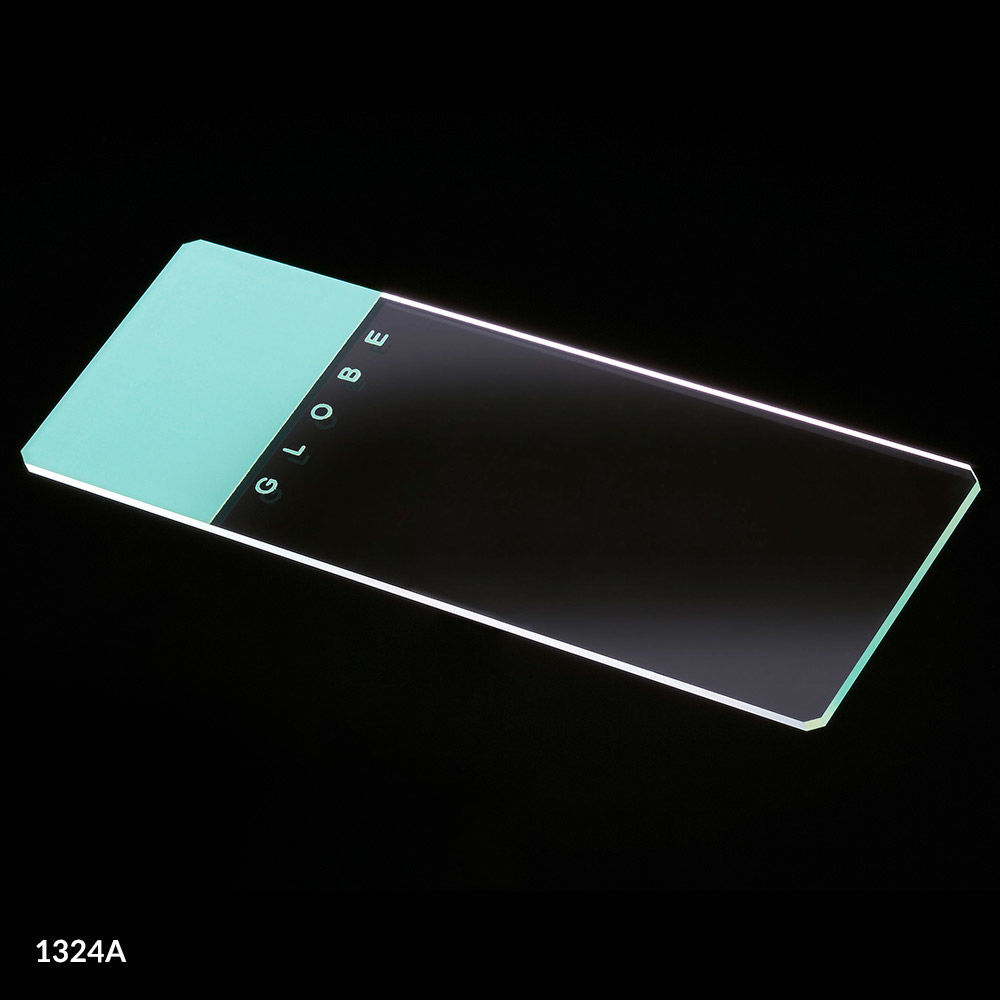 Globe Scientific Colour-Coded Classic Microscope Slides are offered in ten bright, attractive colors. They are available in three edge styles: ground, ground with safety corners or beveled. The ground edge microscope slide offers 90° corners and is perfect for use in automatic cover slip machines. The ground edge microscope slide with safety corners provide slightly clipped corners for comfortable handling and to prevent the risk of finger and hand cuts. The beveled edge microscope slide is ideal for performing blood smears. The highly polished edges are specially angled at 45° to provide a secure grasp during the smearing process. All microscope slides are printed with "Globe" under the frosting area for orientation purposes. They are pre-cleaned and ready to use.