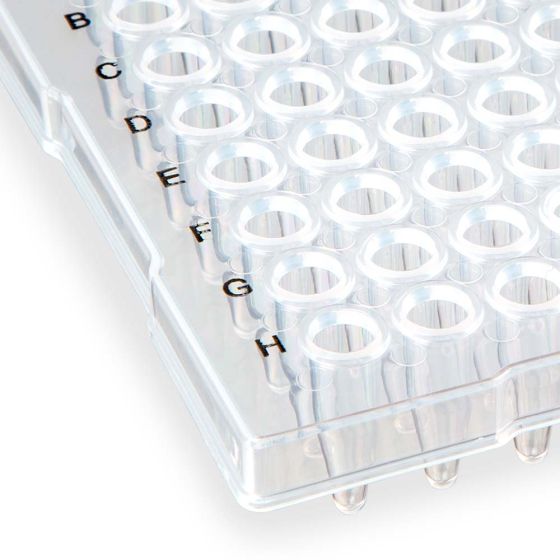 - Raised well rims for optimal sealing with strip caps, sealing mats, or sealing film