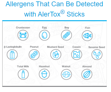 Designed especially to help manufacturers keep their items free of antigens that may cause allergic reactions, Hygiena AlerTox® Sticks are a rapid, user-friendly test for the detection and qualification of main food allergens with no lab equipment or scientific knowledge required.