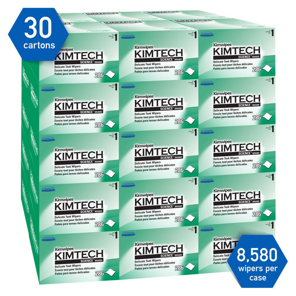 Kimtech Science® Kimwipes® Delicate Task Wipers are a single ply, light-duty wiper that can handle a variety of delicate tasks. Easily wipes up liquid and dust. Anti-stat dispensing reduces lint and electrostatic discharge and controls usage. Portability reduces waste. One-at-a-time dispensing.