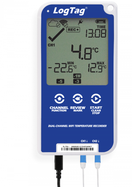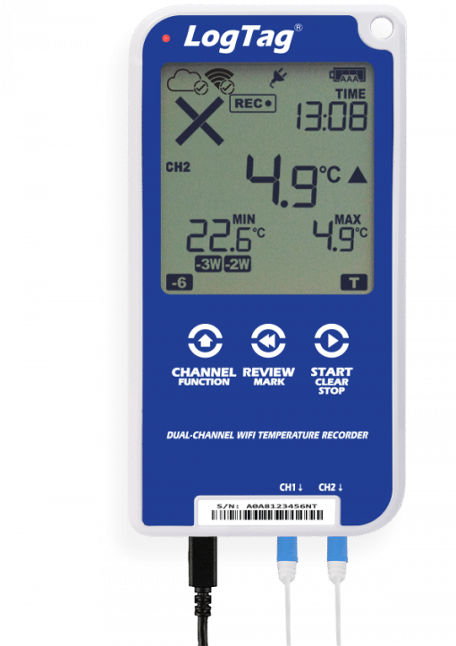 It features a large, easy-to-read display, along with many familiar attributes known from the LogTag family of data loggers. A non-WiFi version of this model is available.