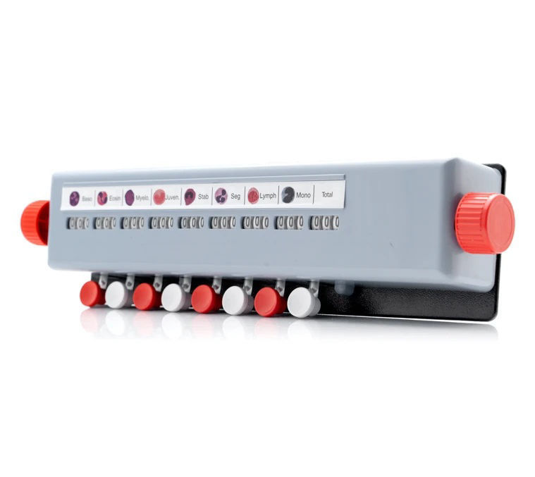 Traditionally differential counters have been manual “gear and lever” machines, and many lab techs are accustomed to the feel of the levered keys. LW Scientific offers both 5-key and 8-key manual counters for those traditional techs to count Baso, Eosin, Myelo, Juven, Stab, Seg, Lymph, and Mono cells. These counters feature pictures and names of each cell for easier identification. LW Scientific Manual Differential Counters are economical, durable, and will provide years of use... even in the most demanding laboratory settings.