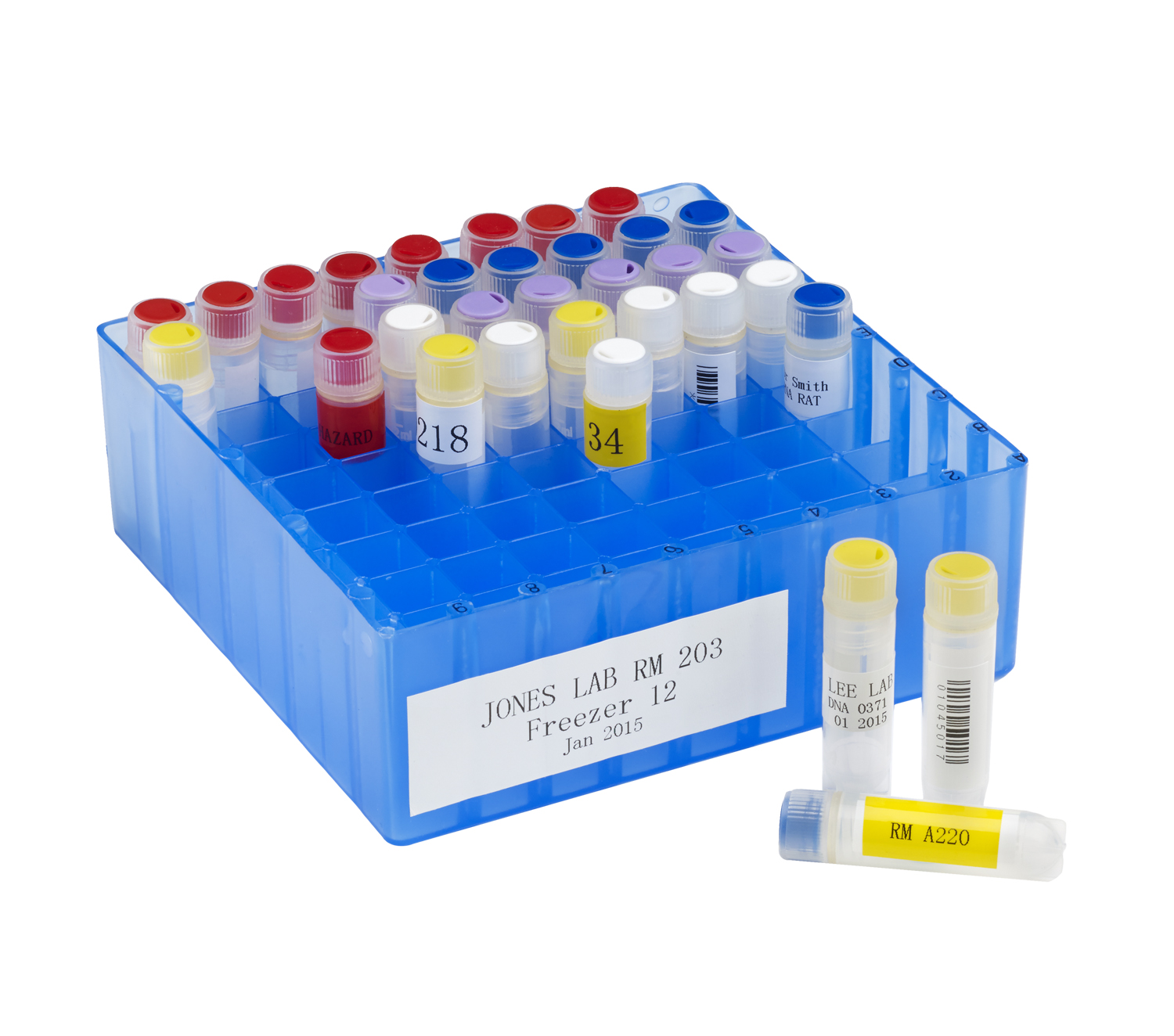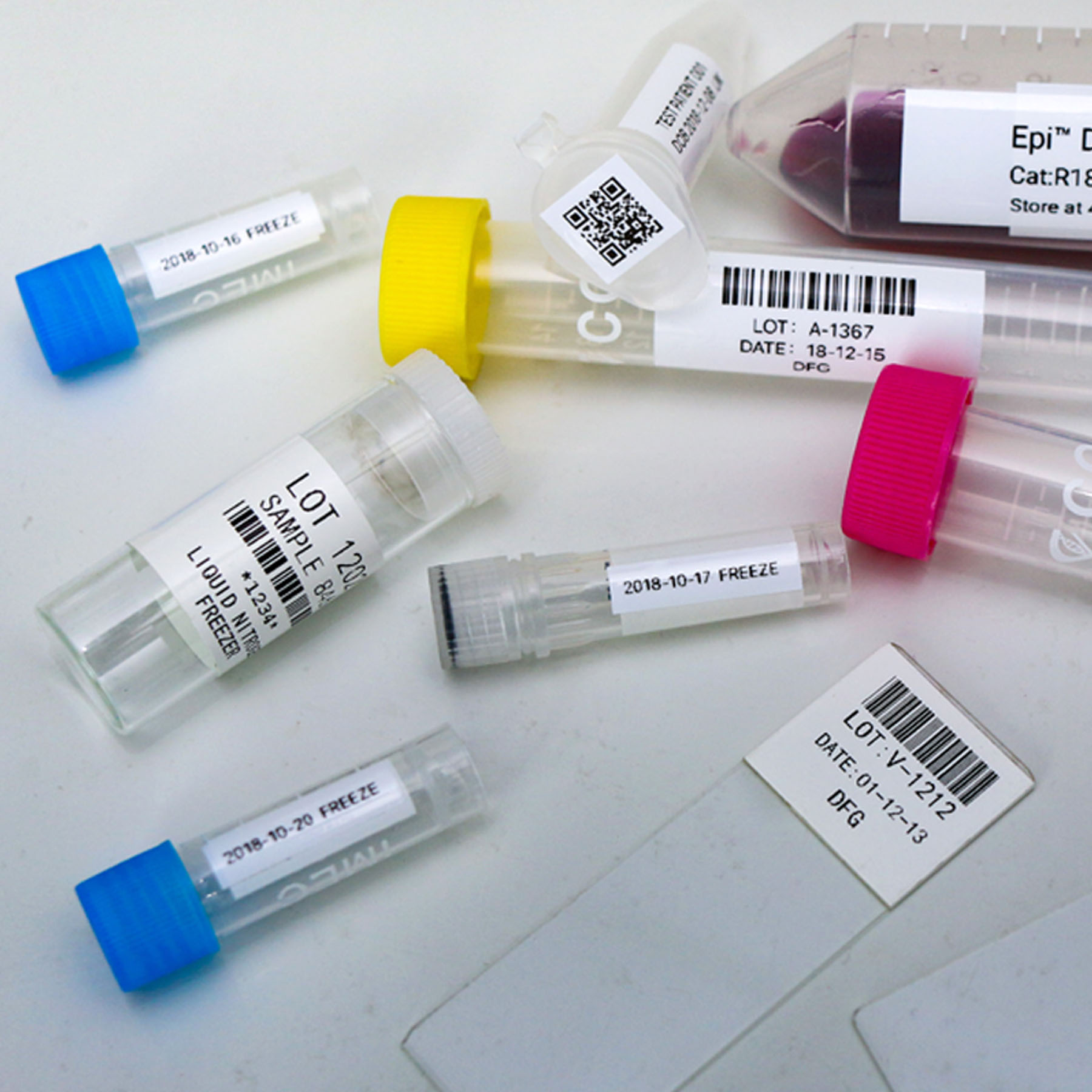 With 13 available label cassettes, customization is at your fingertips. Choose from multiple colors of tape, including transparent. Four label heights are available for different sized vessels. 6mm tapes are great for tissue culture plates, 12mm tapes are ideal from microtubes, 18mm tapes are ideal for medium vials or tubes, and the extra tall 24mm tapes are ideal for large tubes and flasks. Special “ultra-low” label tapes are also available for storage in -80°C environments or for liquid nitrogen applications.