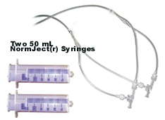 Dual Pump Plumbing Kit : Used with CBL-DUAL-3 to create the continuous infusion system or dual infusion system. Provides dual check valves for two syringes, withdraw will pull fluid from a reservoir and infusion will output into a separate line. Comes pre-assembled and includes two 50 ml NormJect® Syringes.