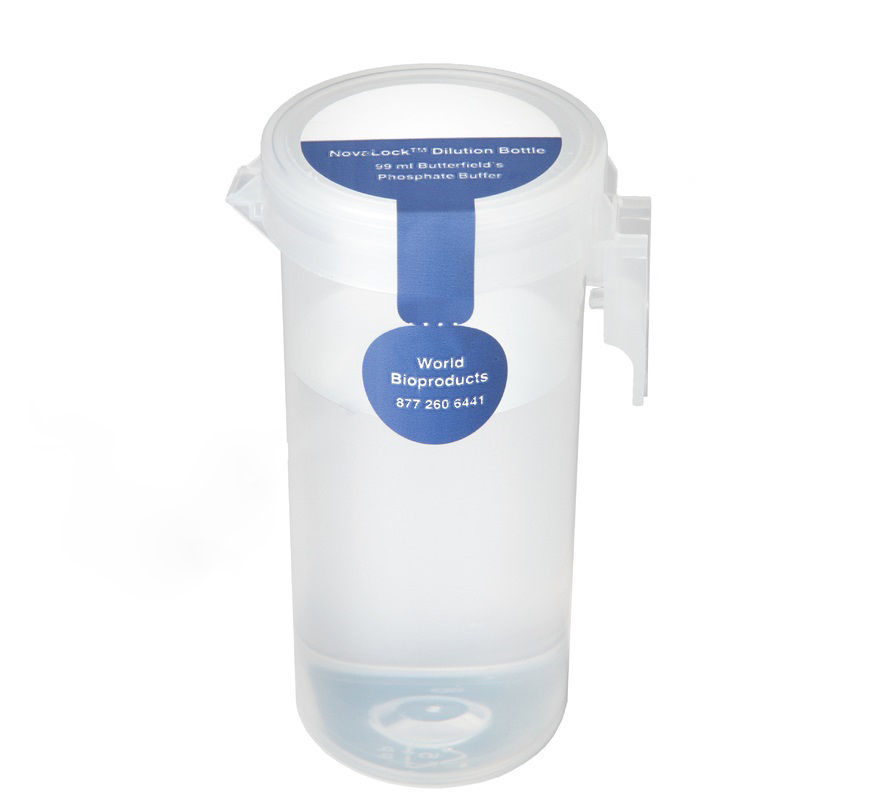 World Bioproducts NovaLock™ Dilution Bottles ready-to-use 90 ml and 99 ml fill volumes saves time and money compared to making and sterilizing your own media.