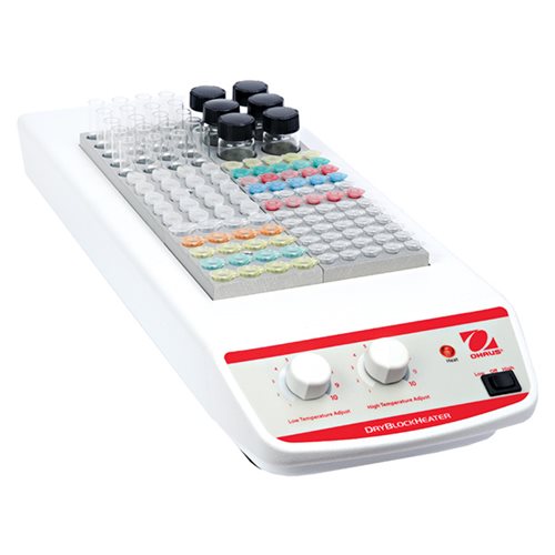 Ohaus 6 Block Dry Block Heaters are ideal for applications that require temperature stability. All units hold one optional interchangeable modular block with over 40 choices. Blocks are easy to use, no tools required. Close tube-to-block contact enables maximum heat retention, resulting in efficient heating. Digital models offer exceptional temperature uniformity and stability for repeatable results, while non-digital models are an economical choice.