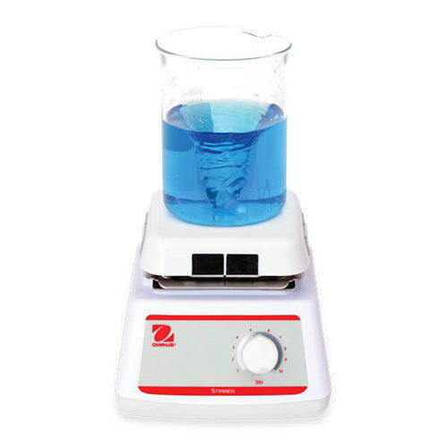 Rugged Ohaus Guardian™ Mini Magnetic Stirrers can stir up to 1000 ml of water on the 4” x 4” (102 x 102 mm) ceramic top plate surface. These units are ideal for educational and other lab environments that require simple, every-day stirring. All models feature a built-in support rod holder with a locking knob, which accepts the optional support rod kit. Includes a 1.5” (38 mm) PTFE-coated stir bar.