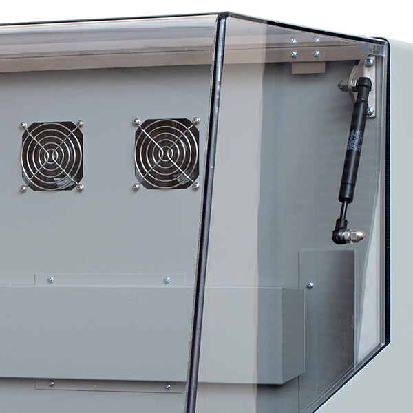 - The exclusive Opti-Flow Forced Ventilation System utilizes twin induction or a single large fan. Air is deflected around & not directly on samples, creating a circular flow of air ensuring uniformity
