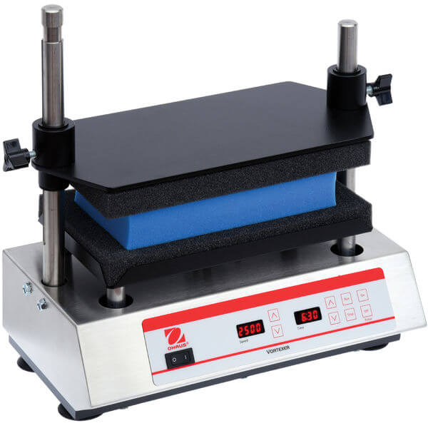 Ohaus Multi-Tube Vortex Mixers are ideal for hands-free, high-throughput sample processing. Interchangeable foam racks for vortexing tubes from 10 to 29 mm in diameter are available. Strong suction cup feet reduce motion and prevent sliding on the work surface for safe operation in the lab. Digital models offer exact speed control for applications that demand repeatable results. Non-digital variable speed models are an economical alternative.