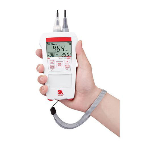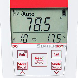The Ohaus Starter 300D Portable DO Meter was created with versatility in mind. It can be operated in the lab with the support of built-in stand, or in the field. Easy to use with a clear, well organized LCD screen, one touch recall of calibration data and stored information. In addition, it is equipped with IP54 protection which shields the meter from damage by water and dust particles.