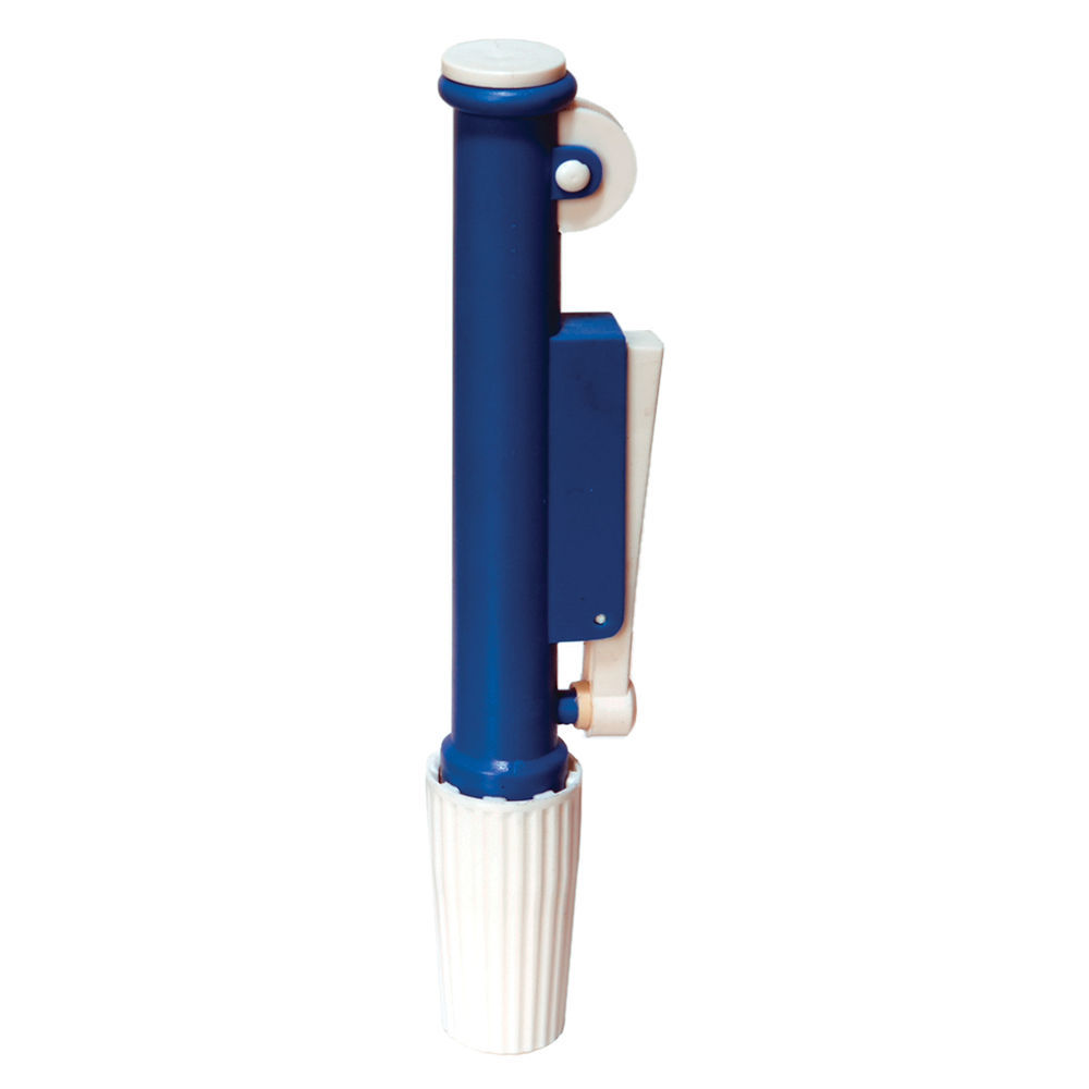 Designed for the quick filling and releasing of liquid in aspirating and serological pipets. Easy to use - simply rotate the thumb wheel to aspirate or dispense accurate measurements. Press the release lever to quickly dispense all liquid from the pipets. The soft elastic chuck has a threaded collar to tightly grip glass or plastic pipettes.