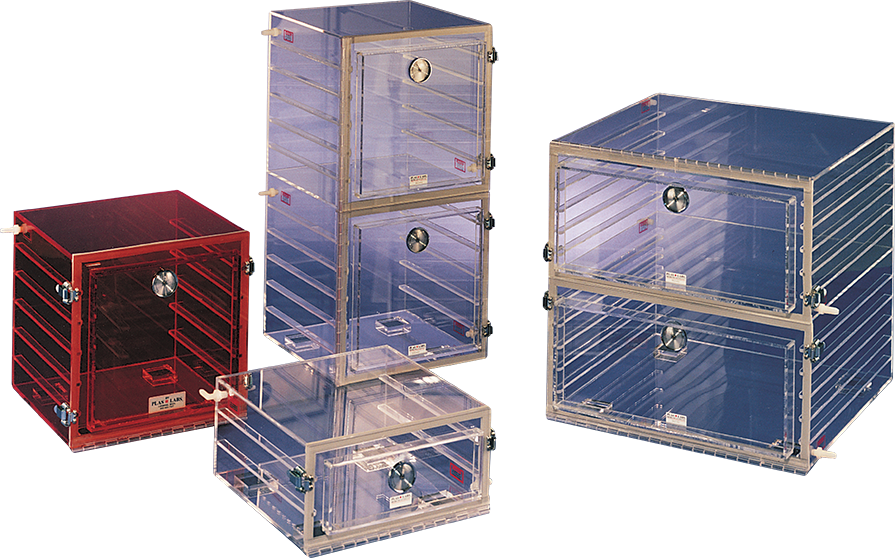 Plas-Labs Desiccator Cabinets are designed to protect, store, or assist in transporting critical materials and prevent their contamination. They are dust and moisture free cabinets that safeguard valuable research specimens or sensitive electronic components. You may easily observe the status of your components without opening the door.