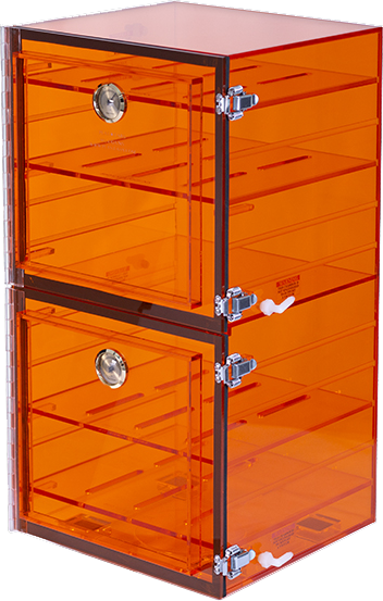 Plas-Labs Desiccator Cabinets are designed to protect, store, or assist in transporting critical materials and prevent their contamination. They are dust and moisture free cabinets that safeguard valuable research specimens or sensitive electronic components. You may easily observe the status of your components without opening the door.