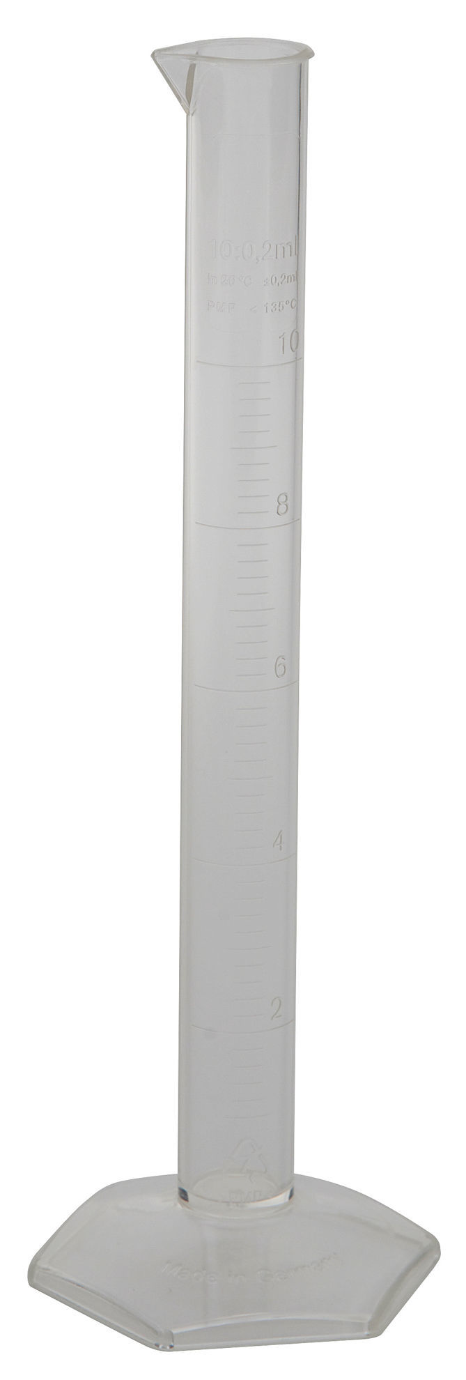 These polymethylpentene graduated cylinders feature permanently molded graduations that will not rub off. Meets stringent international quality criteria according to ISO 6706 standards. Tolerances according to DIN 12 680 TT, Class B.