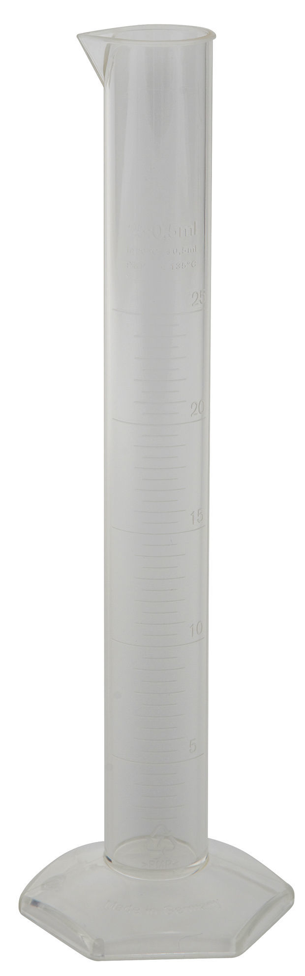 These polymethylpentene graduated cylinders feature permanently molded graduations that will not rub off. Meets stringent international quality criteria according to ISO 6706 standards. Tolerances according to DIN 12 680 TT, Class B.