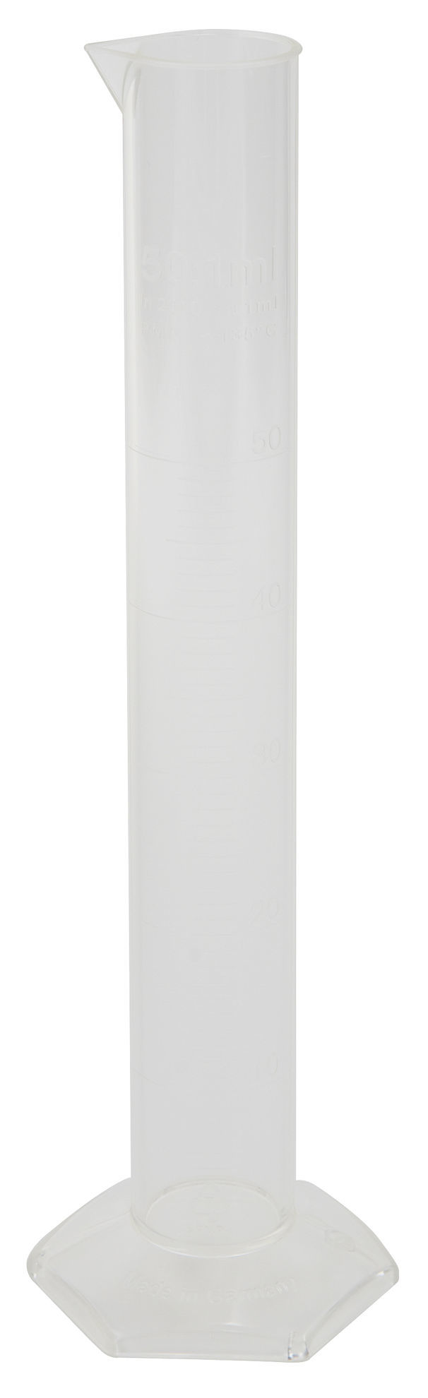 These polymethylpentene graduated cylinders feature permanently molded graduations that will not rub off. Meets stringent international quality criteria according to ISO 6706 standards. Tolerances according to DIN 12 680 TT, Class B.