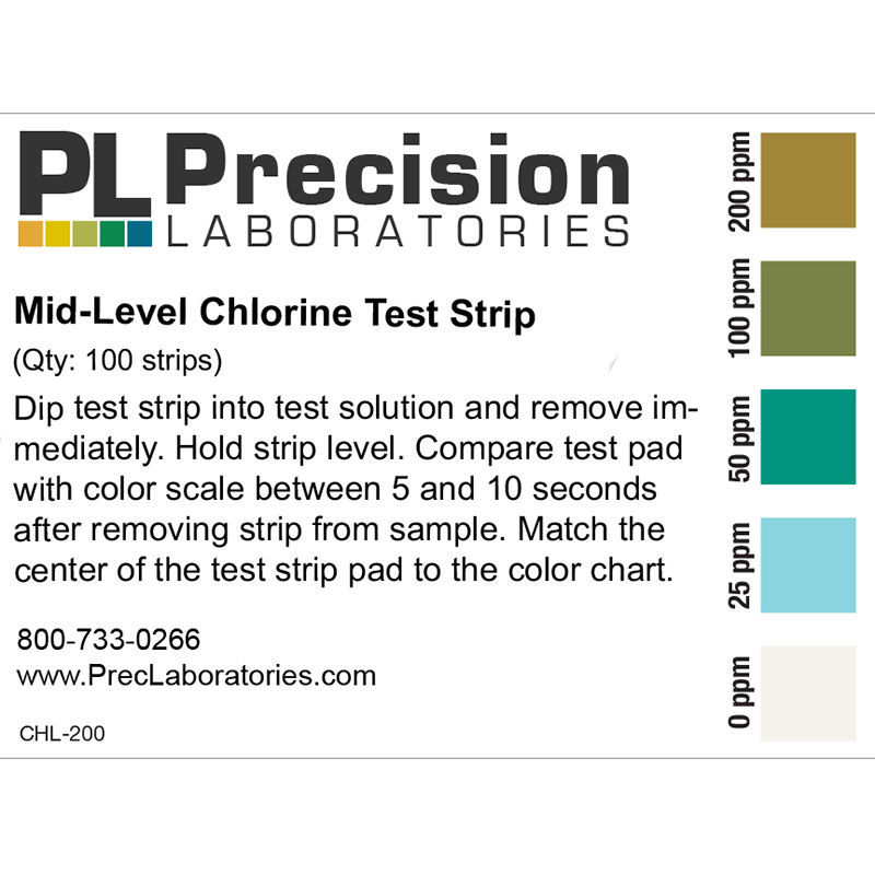 Precision Laboratories Chlorine Test Strips - CHL-200