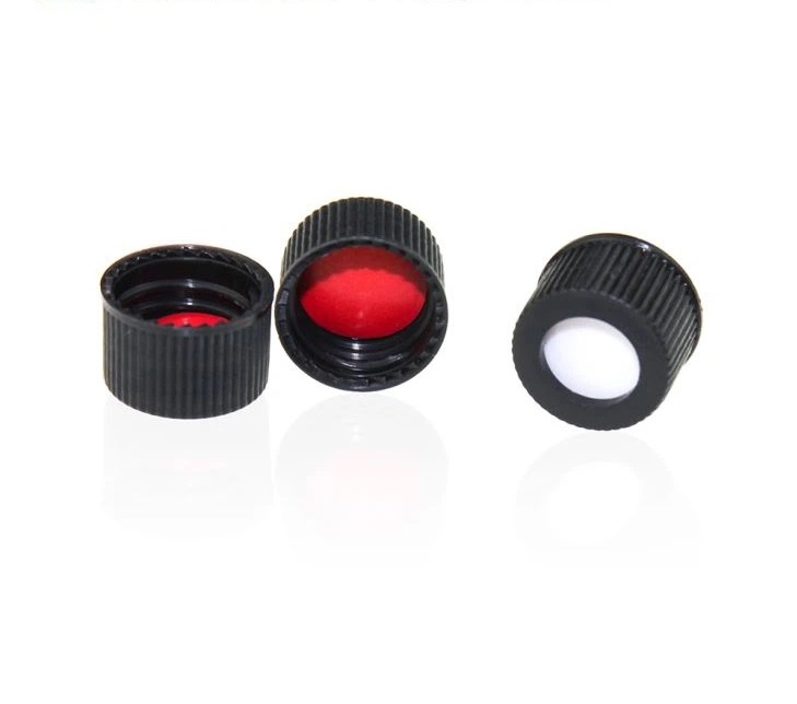 The seperate black polypropylene screw caps are knurled for excellent gripping and comfort, with a fitted septa manufactured from high grade red PTFE/white silicone.