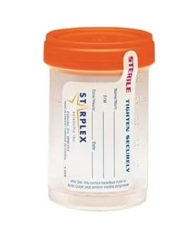 Starplex® Leakbuster™ Specimen Containers consists of 60ml and 90ml sizes for leakproof transportation. Each polypropylene container is lot numbered and has clear graduations. The wide containers feature a QuickTurn™ cap closure for easy application and a tamper tab patient label. Packaged in a sterile, clear plastic peel pouch, 100 per inner bag.