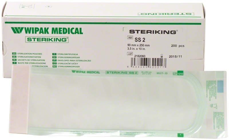 Steriking® Regular Self Seal Sterilization Pouches feature a self-adhesive closure and are suitable for steam and EO gas sterilization. Pouches are printed with steam and EO indicators and are pre-folded to ease closing.