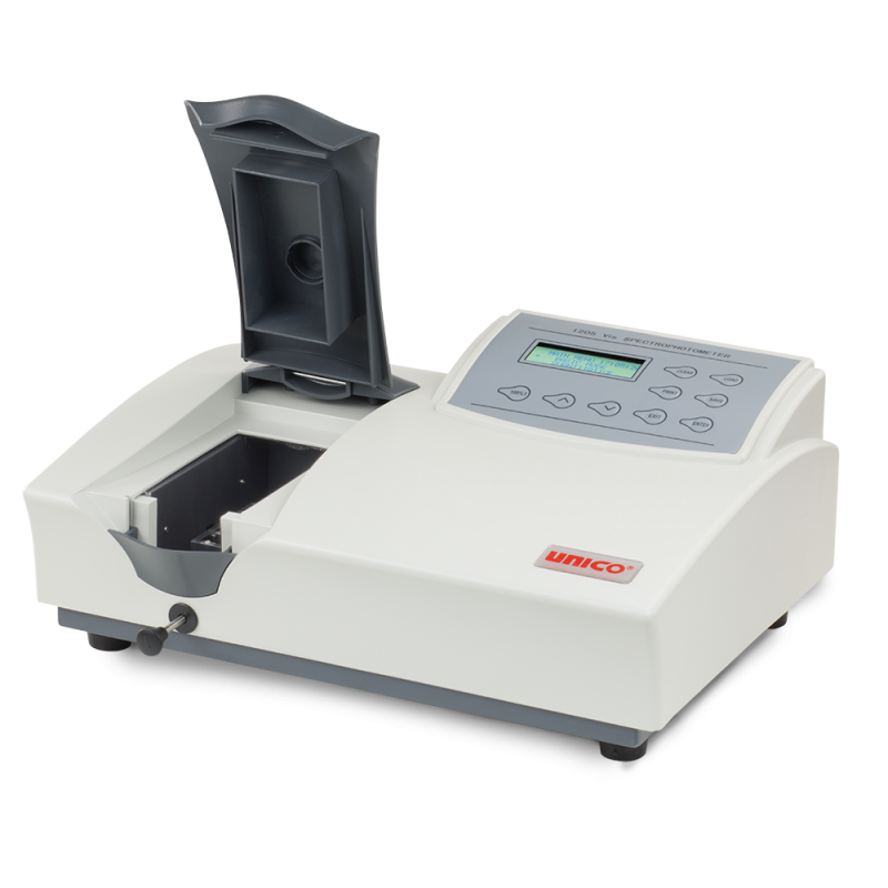The Unico S-1205 is a new, advanced design programmable visible spectrophotometer, expanding on the capabilities of its analog cousin, the S-1200. The S-1205 is an all digital, fully programmable spectrophotometer with 5 nm accuracy and push button, digital key pad wavelength change. This versatile instrument features a wide sample compartment and can accept cuvettes up to 50 mm path-length and a variety of accessories. The wide path length and optional accessories make this unit ideal for water testing, environmental and petroleum industry testing.