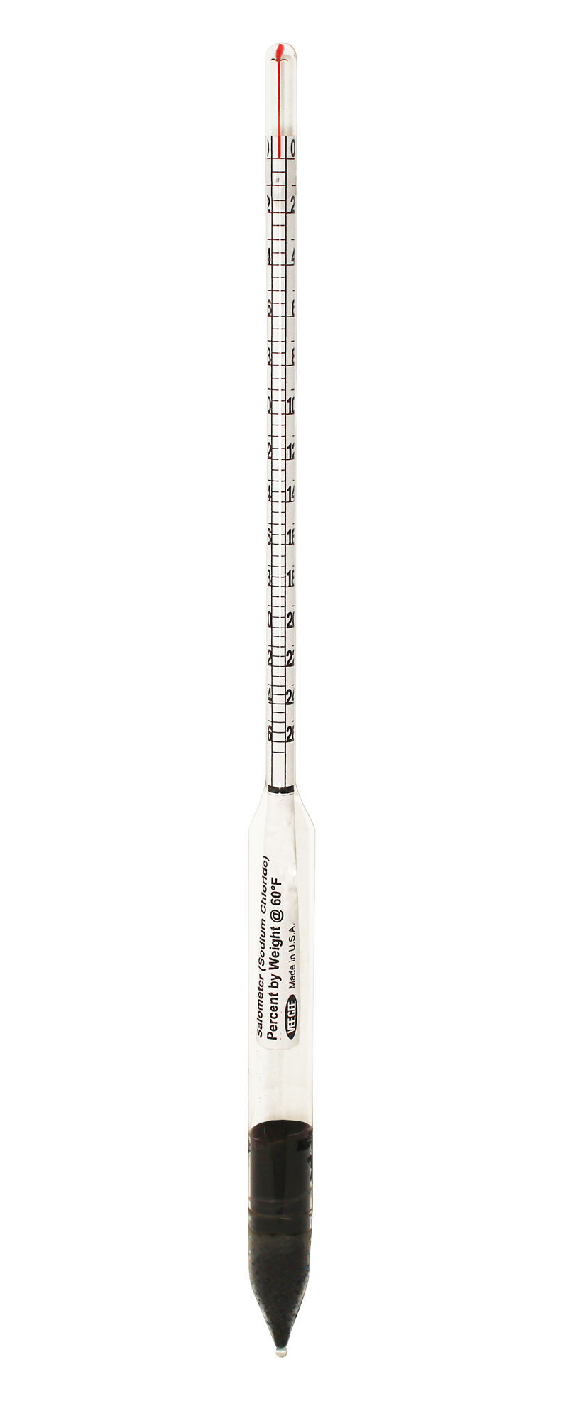 VeeGee Scientific salt hydrometers measure sodium chloride or calcium chloride. All have an accuracy of ±1 subdivisions and an approximate length of 305 mm.